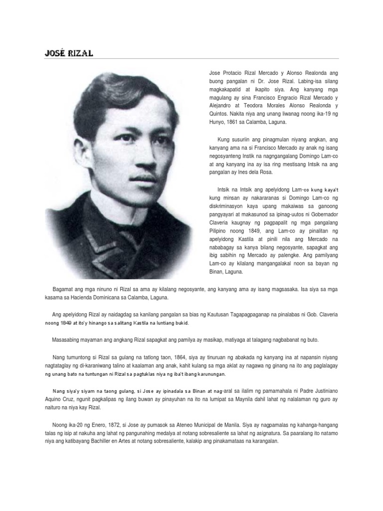 Talambuhay Ni Dr Jose Rizal Joserizal Com