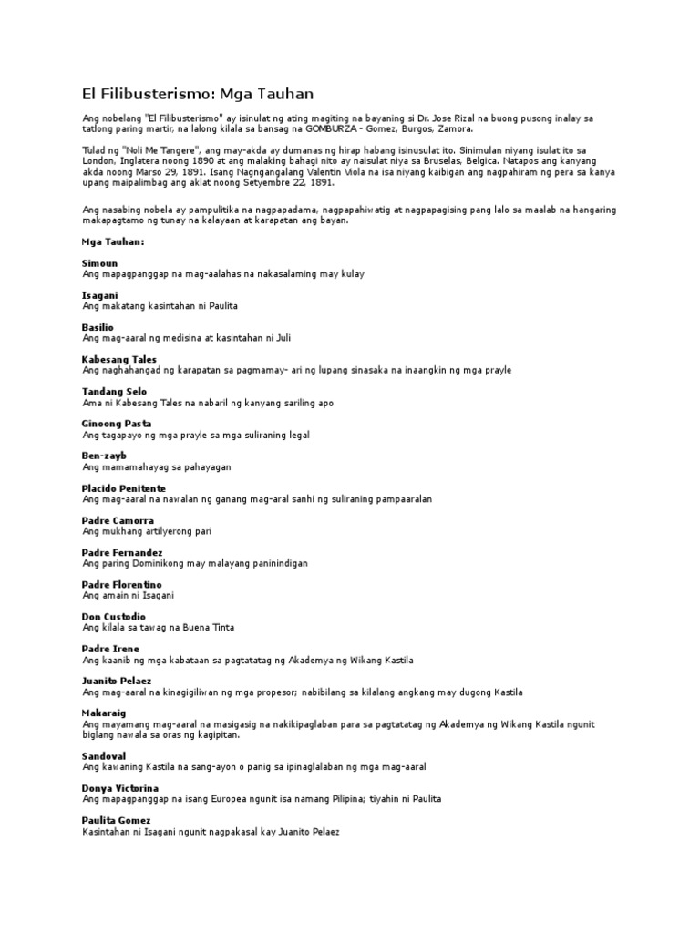 El Filibusterismo Tauhan At Mga Katangian Ng Bawat Isa