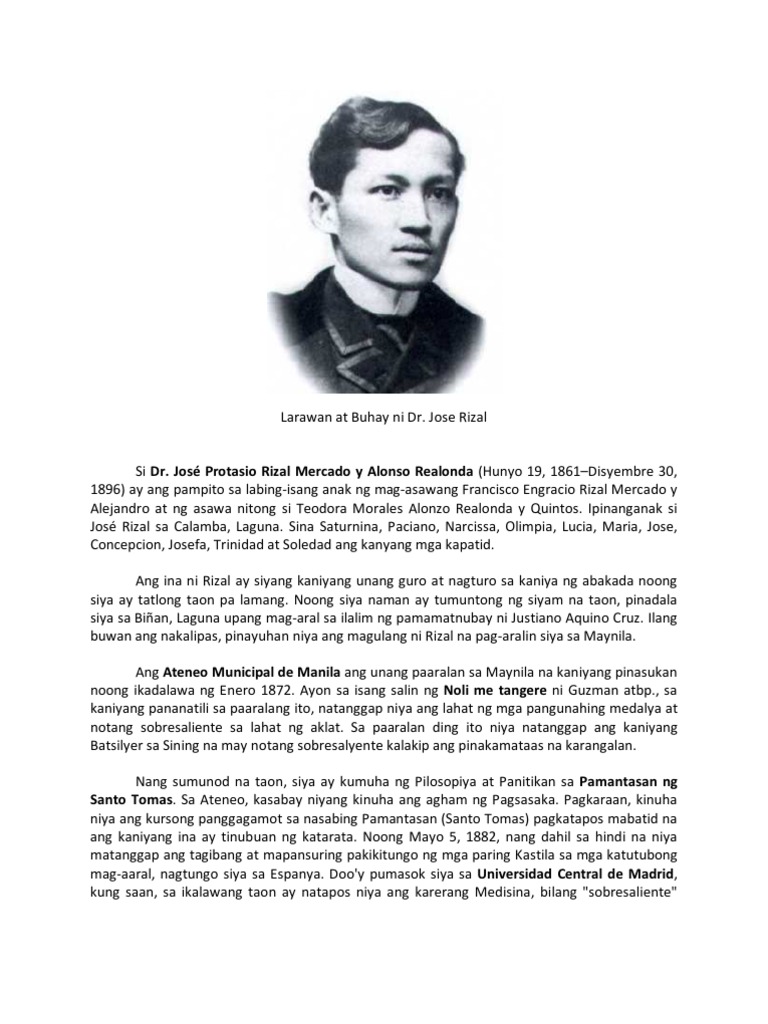 Filipino 9 Talambuhay Ni Dr Jose Rizal