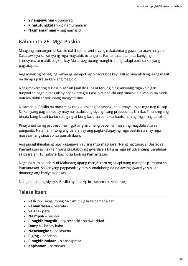 Buod ng kabanata 20 el filibusterismo ang nagpapalagay. KALIGIRANG KASAYSAYAN NG EL FILIBUSTERISMO FILIPINO 10 2. Gamitin niyo ang inyong kapangyarihan upang makatulong sa kapwa. Walang kamatayan ang nobelang El Filibusterismo ni Dr.