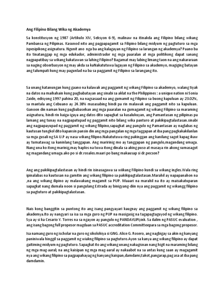 Ang Filipino Bilang Wika Ng Akademya