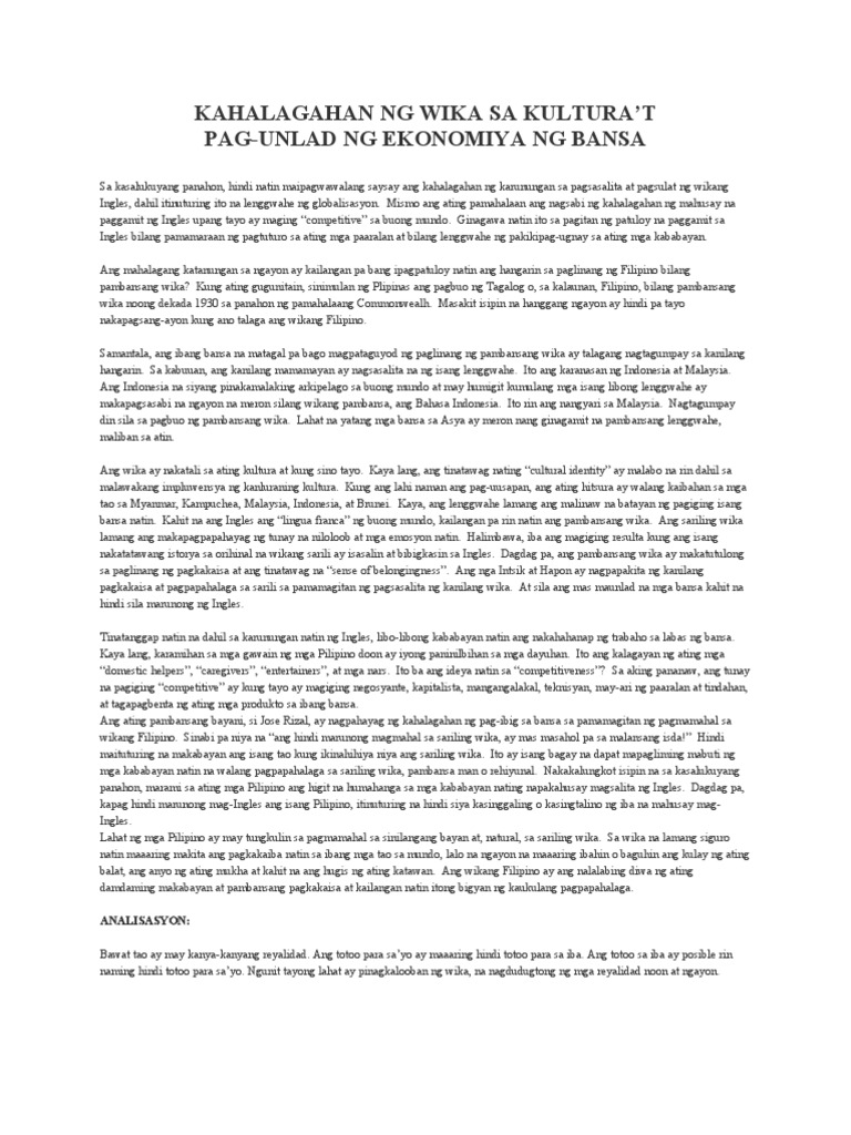 Pdf Kahalagahan Ng Wika Sa Kultura T Pag Unlad Ng Ekonomiya Ng Bansa Funtimeswith Myreene Academia Edu