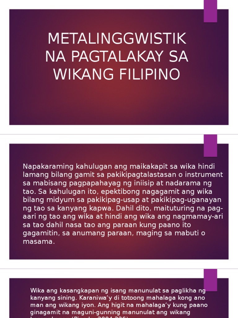 Metalinggwistik Na Pagtalakay Sa Wikang Filipino