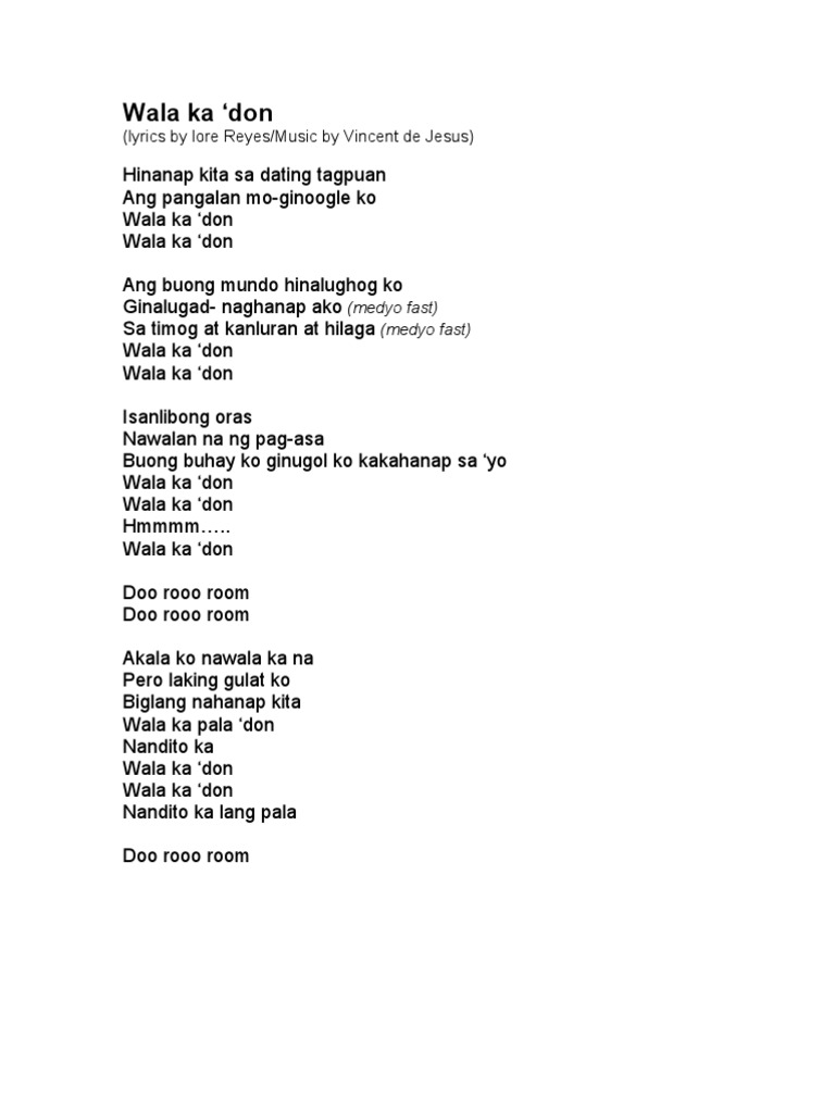 Wala Ka Don Lyrics By Lore Reyes Music By Vincent De Jesus