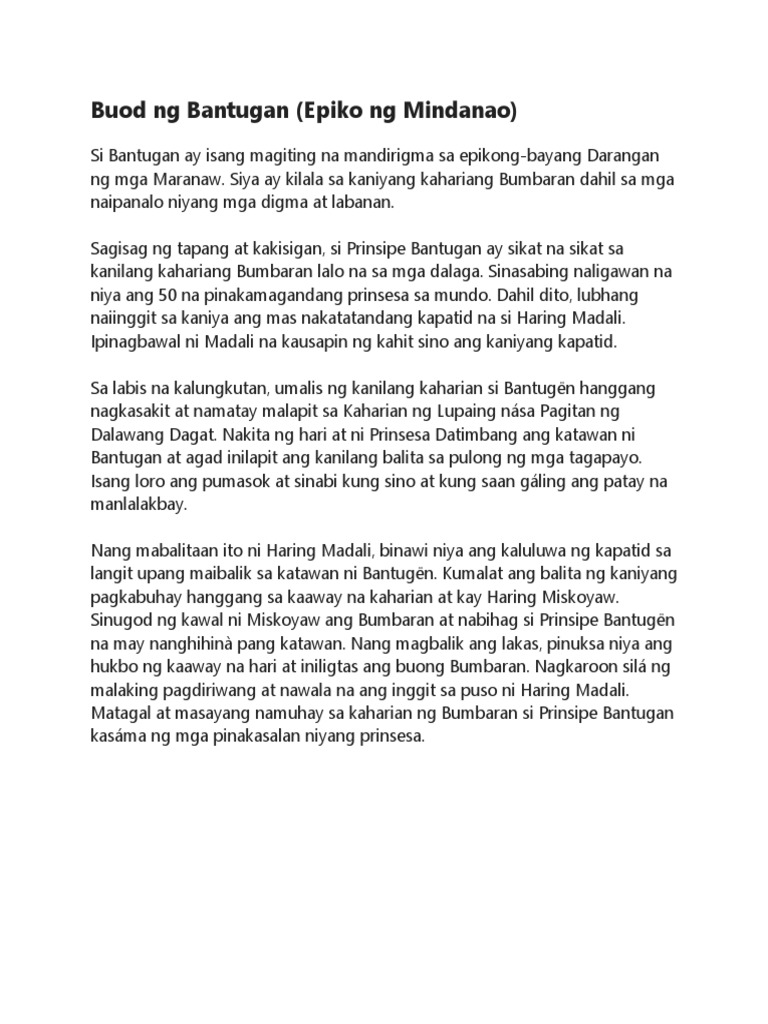 Buod Ng Bantugan Epiko Ng Mindanao