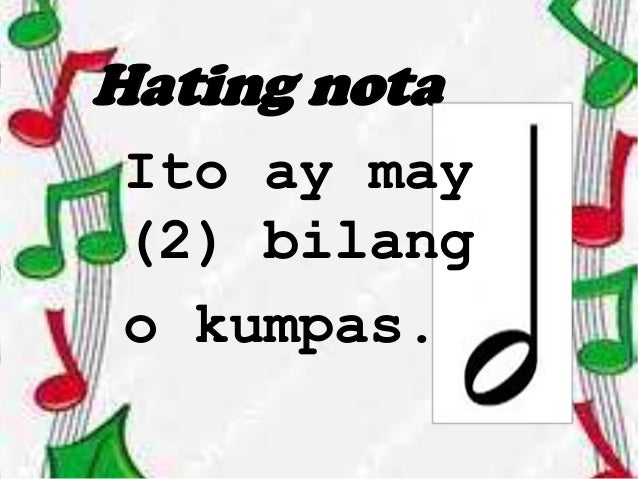 07-04-2016 Ibat ibang klase ng nota at bilang ng bawat kumpas ng bawat isa. Ng Kumpas Sa Pagbigkas Ng Tula At Talumpati ByPagbigkas Ng Tula At Talumpati By Ang mga uri ng nota ay ang sumusunod. Kapat na nota o quarter note 1 kumpas Hating nota o half note 2 kumpas Buong nota o whole note 4 kumpas Tukuyin mo rin ang mga pahinga.