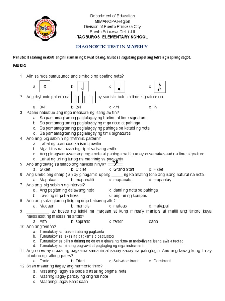 Musika 4 Iba T Ibang Nota At Pahinga Q1 Quiz