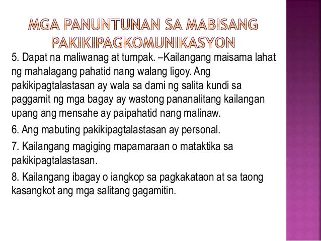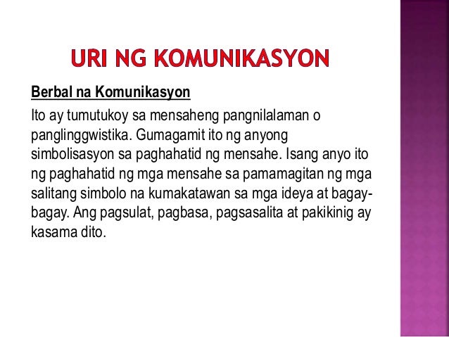 2 Ang taong nagsasalita sa ibang wika na hindi niya natutunan ay nakikipag-usap hindi sa tao kundi sa Dios dahil wala namang nakakaunawa sa kanya. Sa hulihan ng mensahe ay nagsalita pa ng Tagalog ang Santo Papa. Komunikasyon ito ay isang kilos o proceso ng pagpapalitan ng impormasyon o mensahe na nagsisimula sa nagpapadala sender at daluyan channel na naglalaman ng impormasyon o mensahe hanggang sa tumatanggap receiver.
