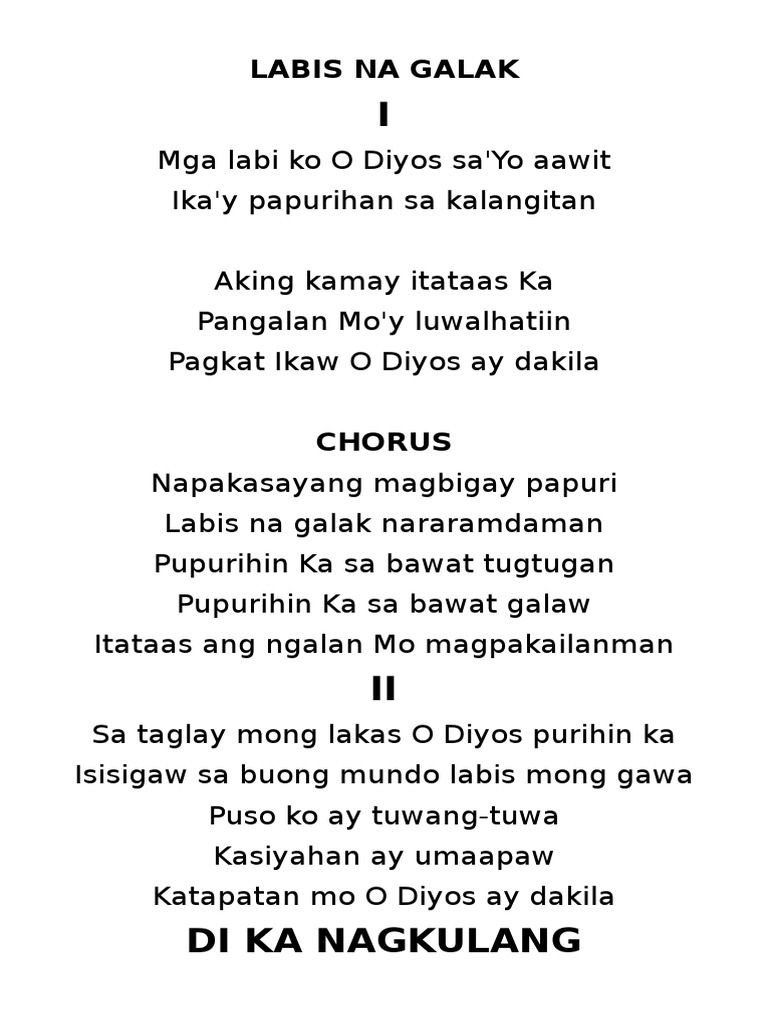 Catholic Songbook is an online songbook. Muli buong puso po akong nagpapasalamat sa inyong kabutihang loob at ang Panginoon ay laging sumaating lahat. Ginawa Mo Yahweh.