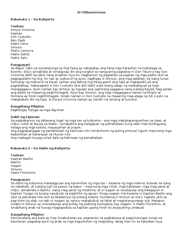 Buod Ng Mga Kabanata Ng El Filibusterismo Docx