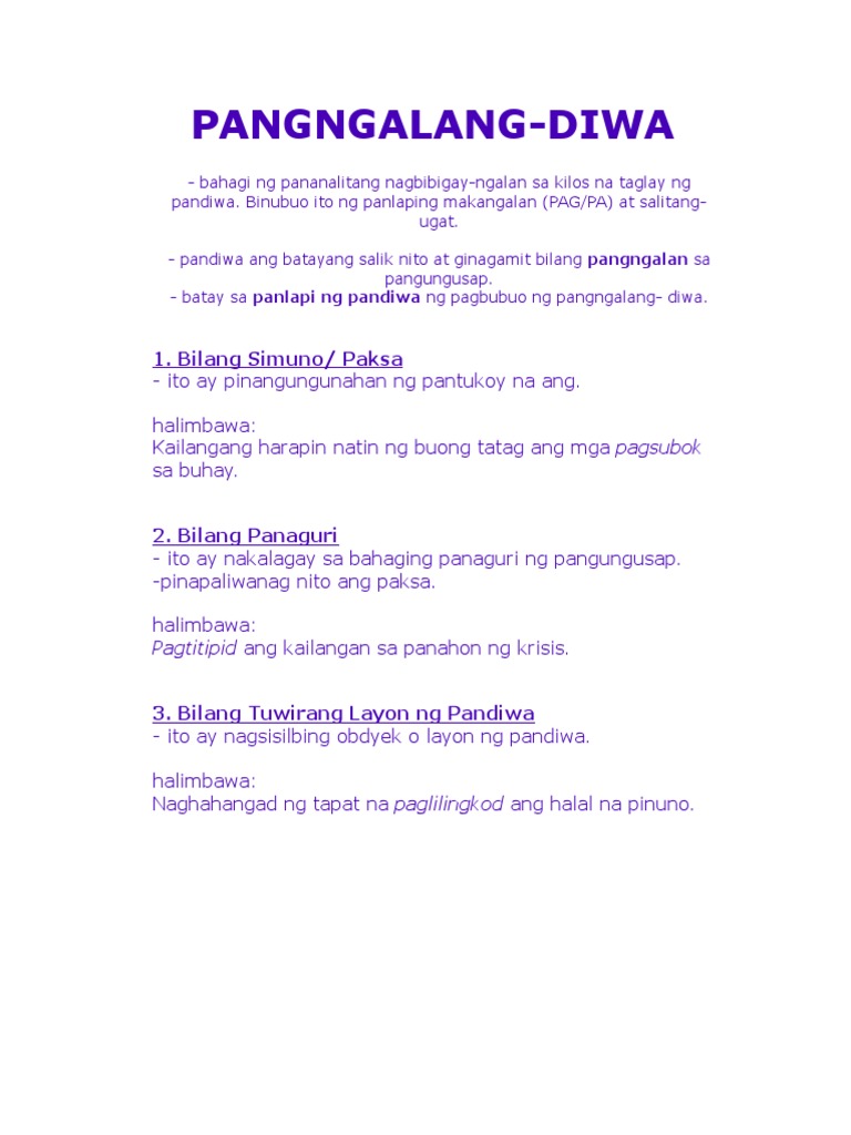 It could also be translated as the sense central point or main idea. Kopyahin sa sagutang papel. Each region has a local dance as well as different music.