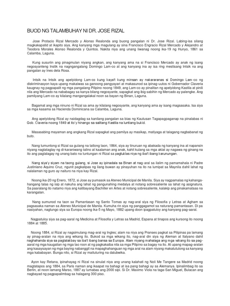 Doc Buod Ng Talambuhay Ni Dr Jose Rizal Neilbern Merle Academia Edu